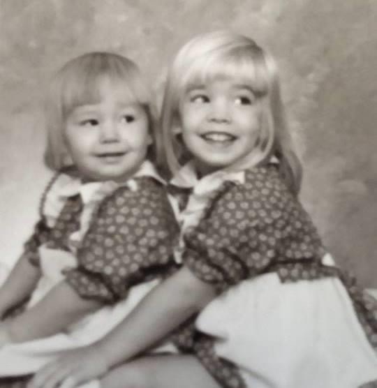 What they don’t tell you about being an Irish twin is that your mom will dress you the SAME until you are at least 15 years old. Exhibit A to the right. Now, you’re going to ooooh and aaaahhh about how freaking adorable we were, but let me tell you, this is only one of 3,000 photos of us looking the same way. It’s no wonder our tastes and styles are so different to this day. Rebellion takes subtle forms, my friends. I swore I would never do this to my girls, but apparently I was slipped some sort of amnesia-inducing concoction from my mom when I gave birth, because I absolutely did this when my girls were small. Before you judge me harshly, it was only at Christmas when I felt some sort of need to make them wear coordinating dresses. I’m not proud; I’m in a 12-step program for it today.